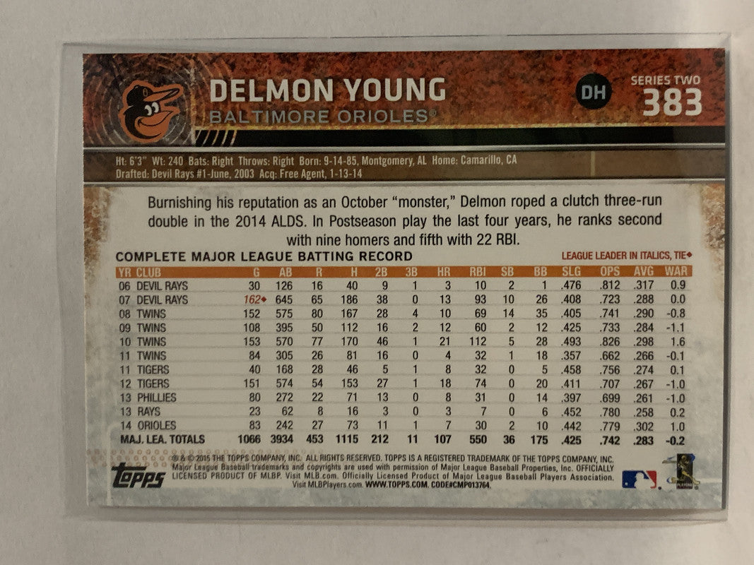 #383 Delmon Young Baltimore Orioles 2015 Topps Series two Baseball Card