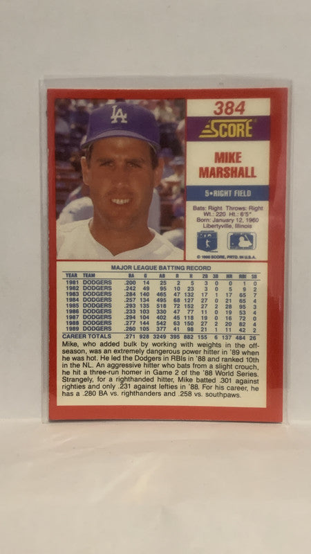 #384 Mike Marshall Los Angeles Dodgers 1990 Score Baseball Card