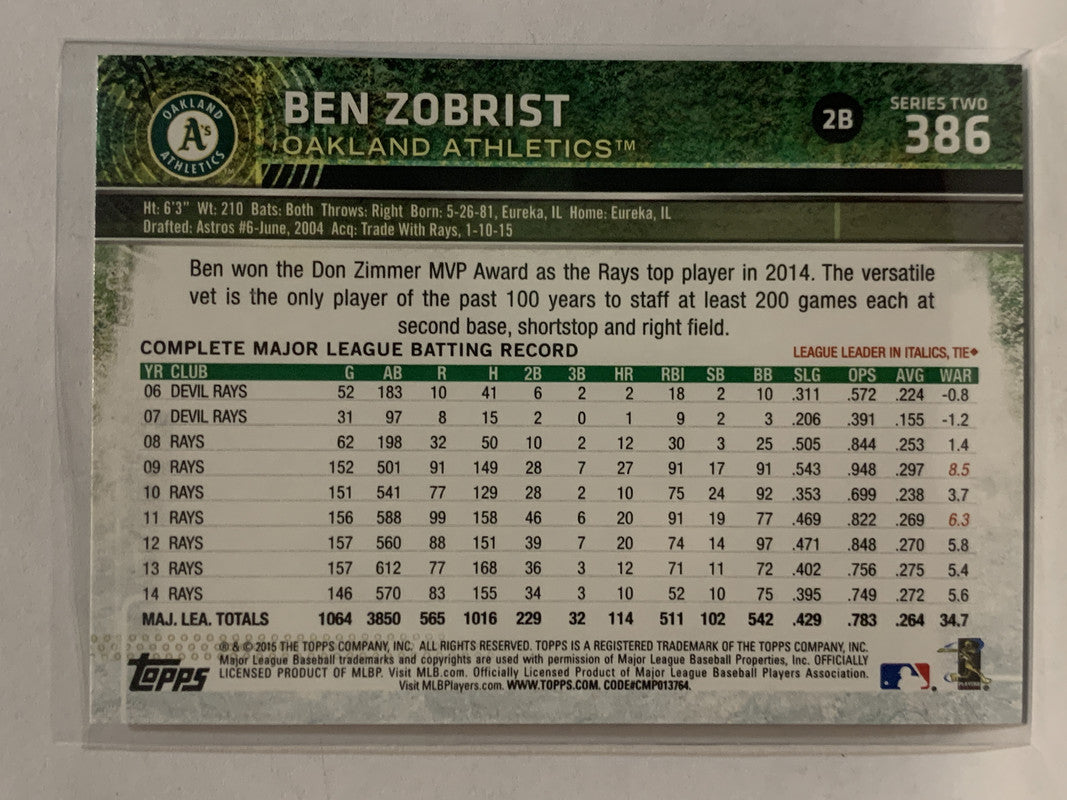 #386 Ben Zobrist Oakland Athletics 2015 Topps Series two Baseball Card
