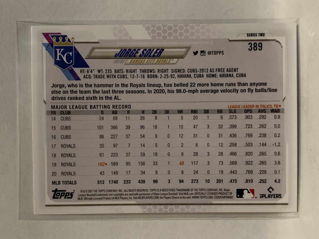 #389 Jorge Soler Kansas City Royals 2021 Topps Series 2 Baseball Card