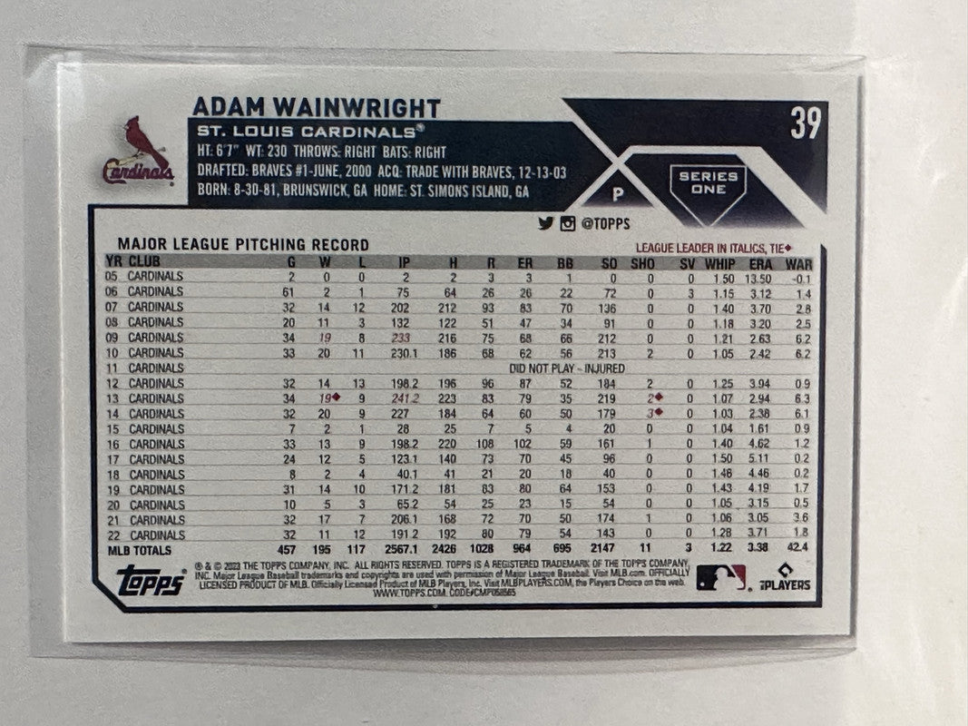 #39 Adam Wainwright St Louis Cardinals 2023 Topps Series One Baseball Card
