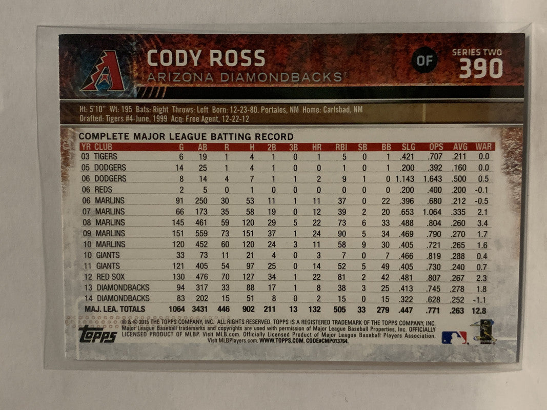 #390 Cody Ross Arizona Diamondbacks 2015 Topps Series two Baseball Card