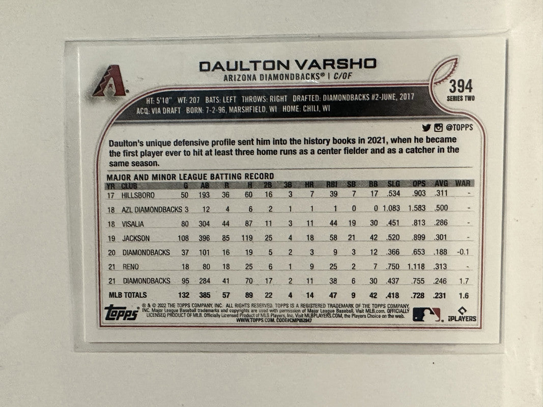 #394 Daulton Varsho Arizona Diamondbacks 2022 Topps Series Two Baseball Card