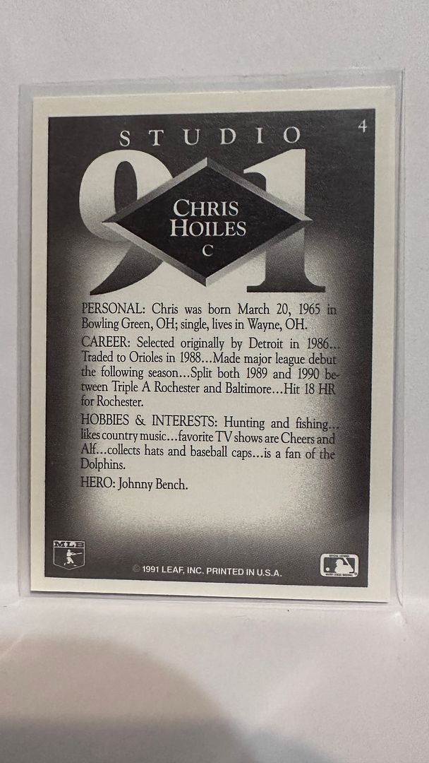 #4 Chris Hoiles Baltimore Orioles 1991 Studio Baseball Card