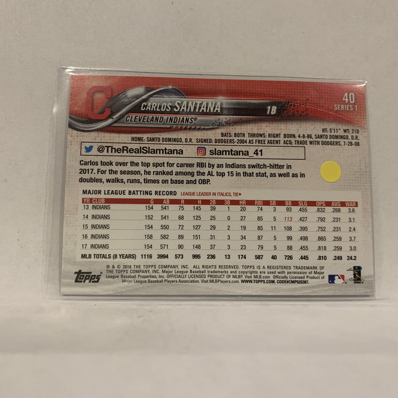 #40 Carlos Santana Cleveland Indians Series 1 2018 Topps Baseball Card A1Q