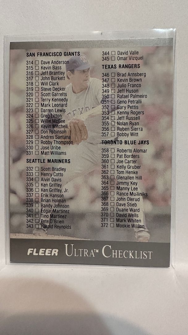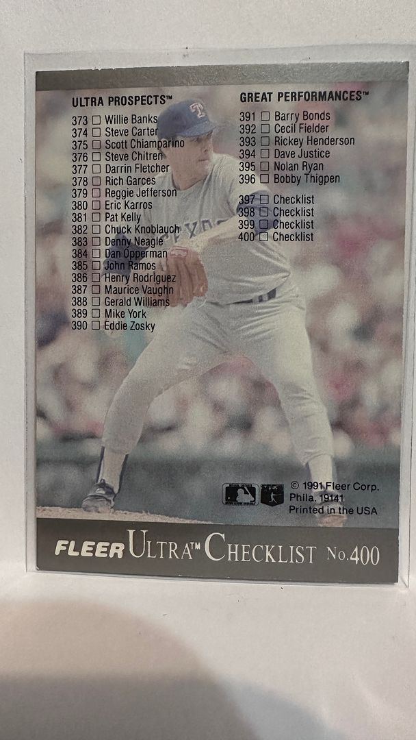 #400 Cheklist 1991 Fleer Ultra Baseball Card