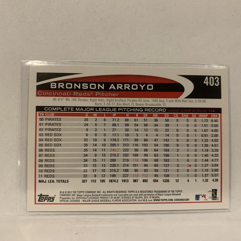 #403 Bronson Arroyo Cincinnati Reds 2012 Topps Baseball Card A2I