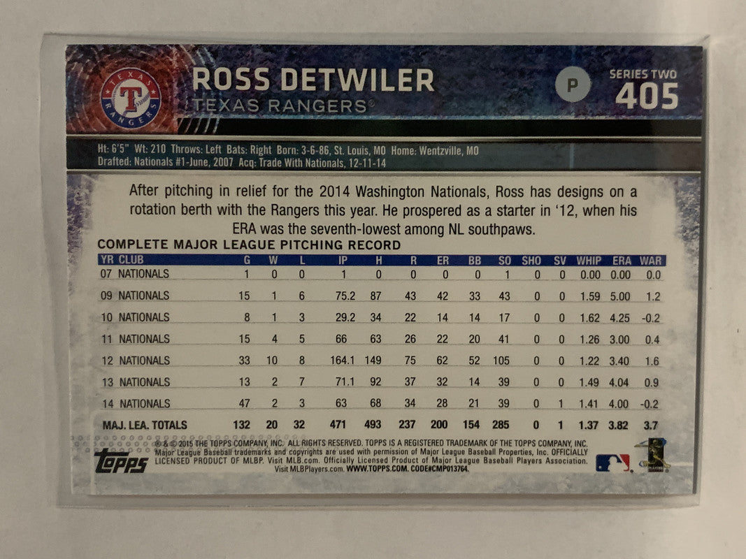 #405 Ross Detwiler Texas Rangers 2015 Topps Series two Baseball Card