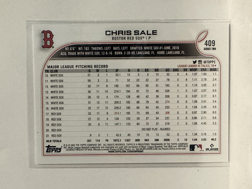 #409 Chris Sale Boston Red Sox 2022 Topps Series Two Baseball Card