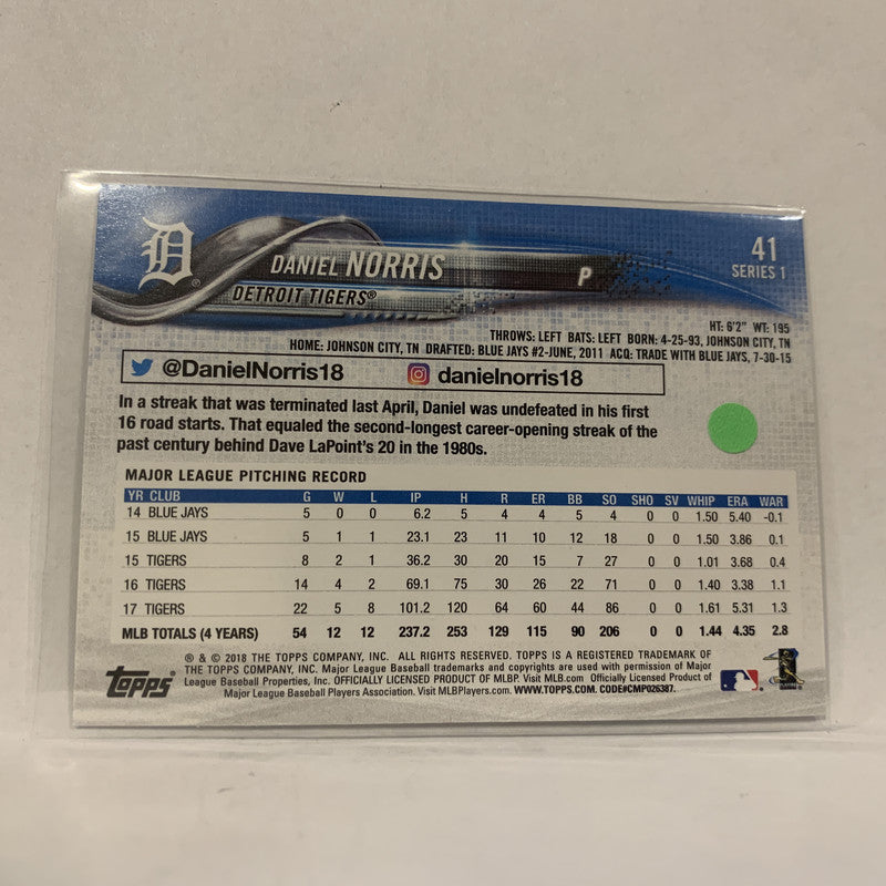 #41 Daniel Norris Detroit Tigers Series 1 2018 Topps Baseball Card A1M