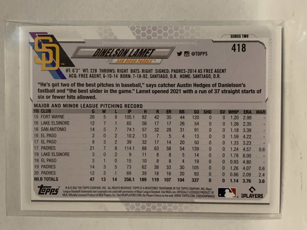 #418 Dinelson Lamet San Diego Padres 2021 Topps Series 2 Baseball Card