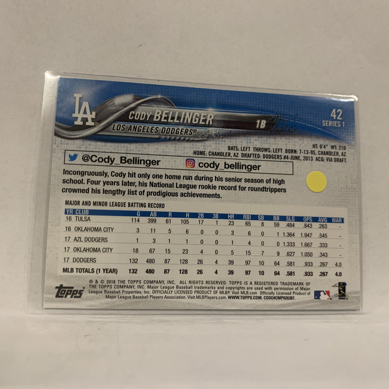 #42 Cody Bellinger Los Angeles Dodgers Future Stars Topps All Star Rookie Series 1 2018 Topps Baseball Card A1M
