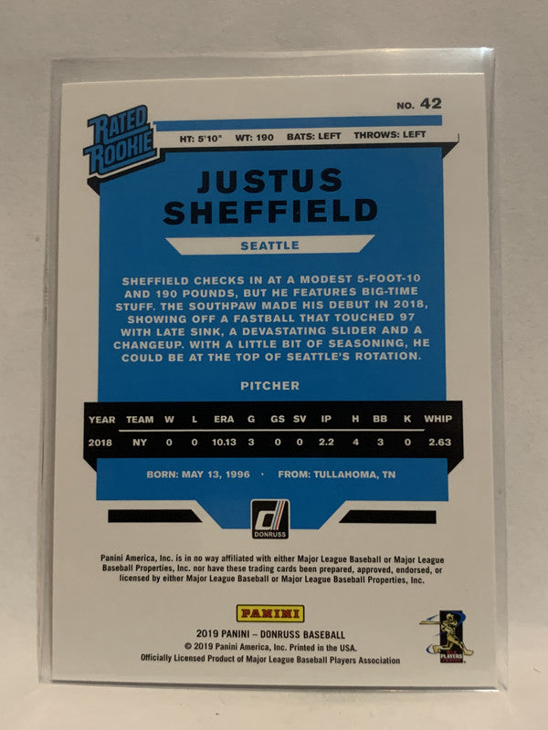 #42 Justus Sheffield Seattle Mariners 2019 Donruss Baseball Card MLB