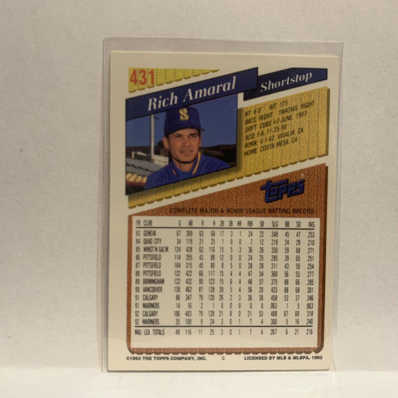 #431 Rich Amaral Seattle Mariners 1993 Topps Baseball Card IS