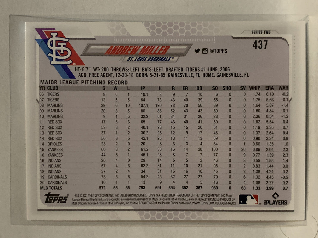 #437 Andrew Miller St Louis Cardinals 2021 Topps Series 2 Baseball Card