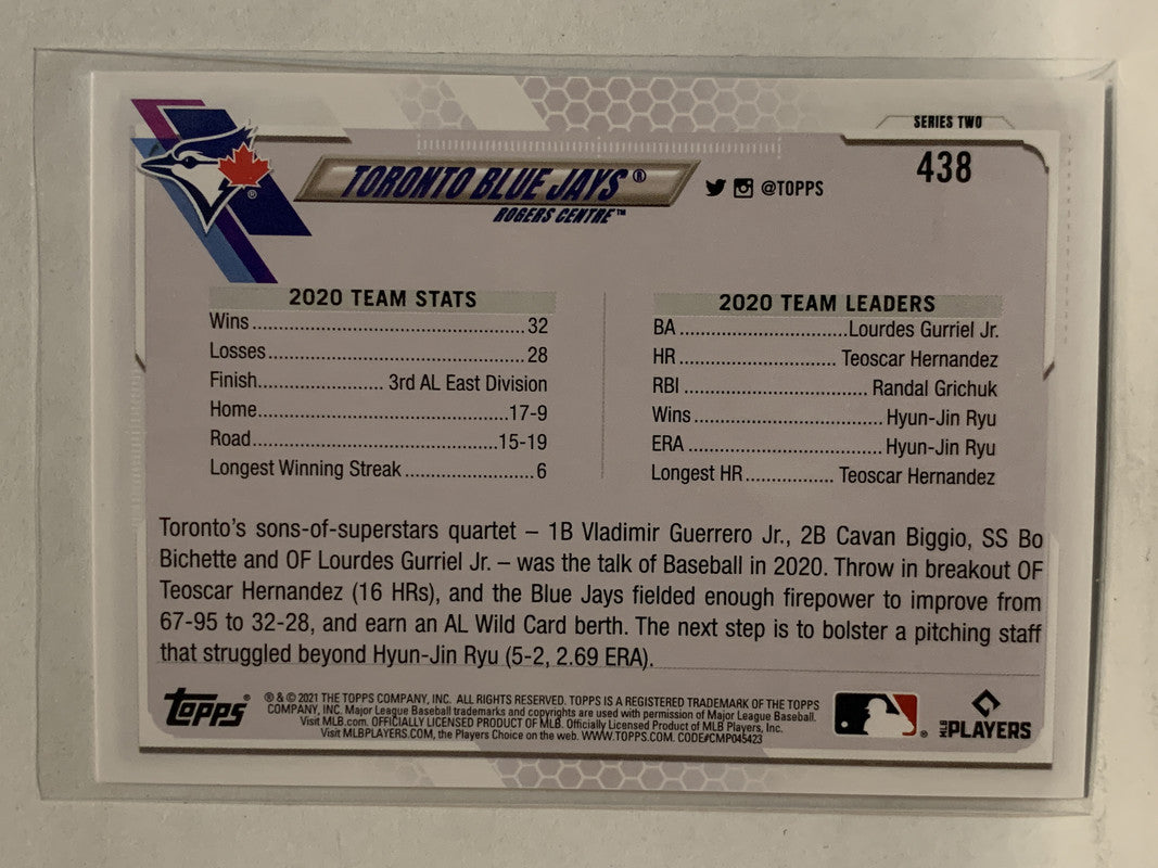 #438 Team Card Toronto Blue Jays 2021 Topps Series 2 Baseball Card