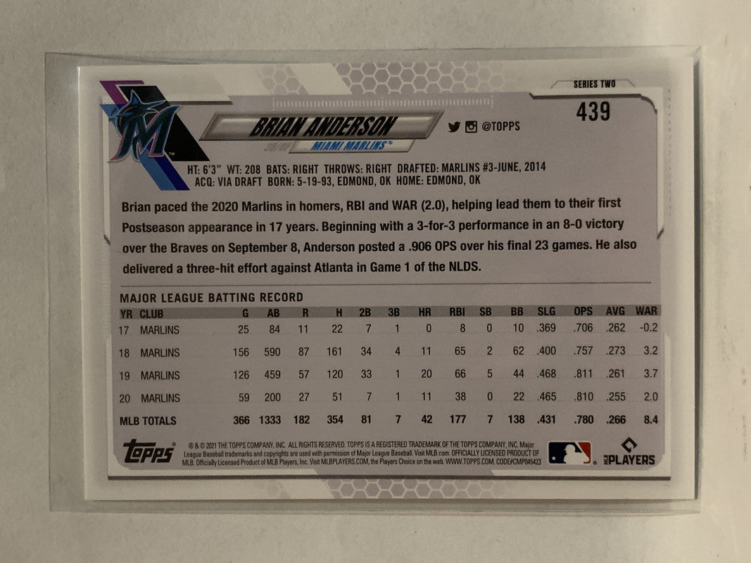 #439 Brian Anderson Miami Marlins 2021 Topps Series 2 Baseball Card