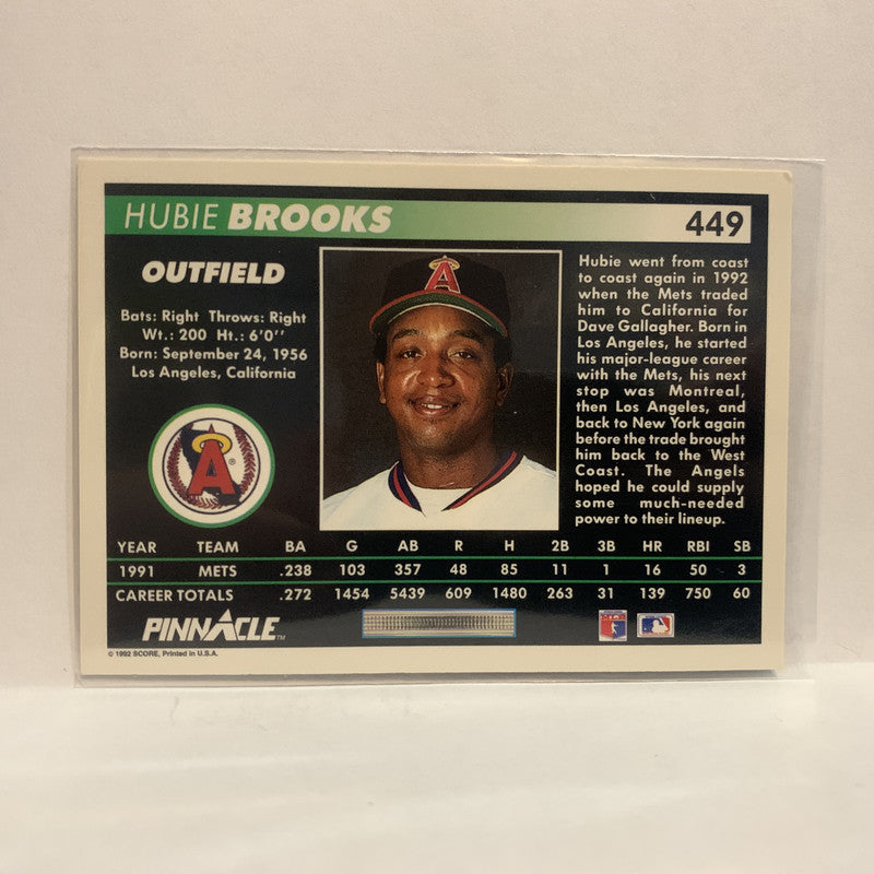 #449 Hubie Brooks Los Angeles Angels 1992 Pinnacle Baseball Card IJ