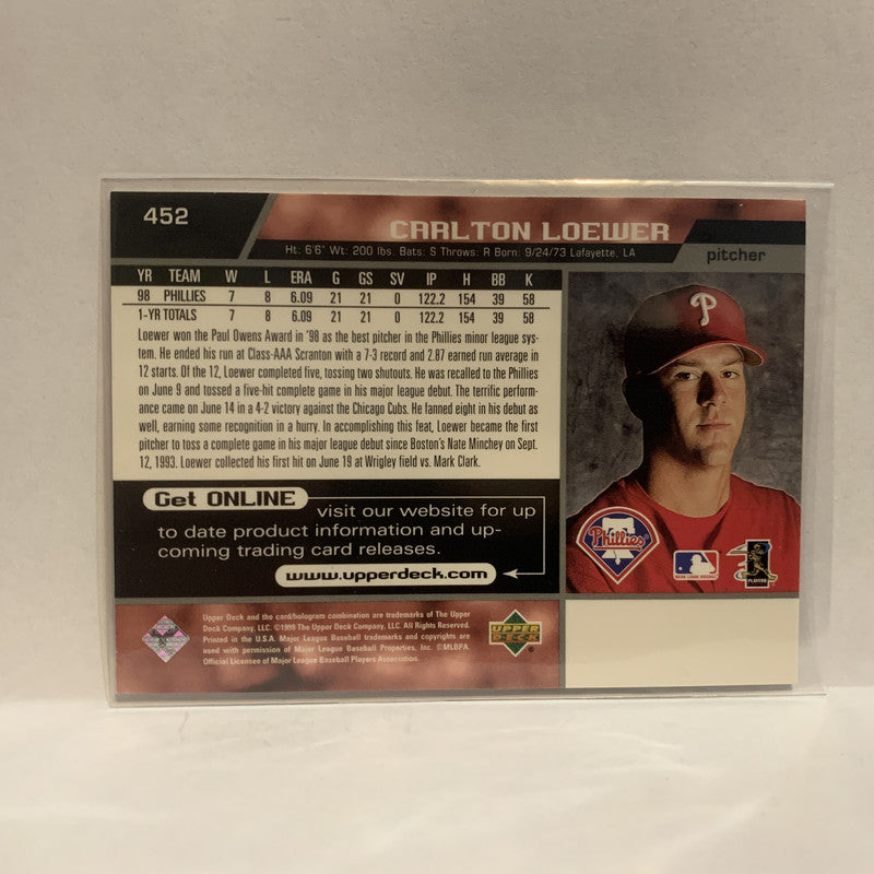#452 Carlton Loewer Philadelphia Phillies 1999 Upper Deck Baseball Card IV