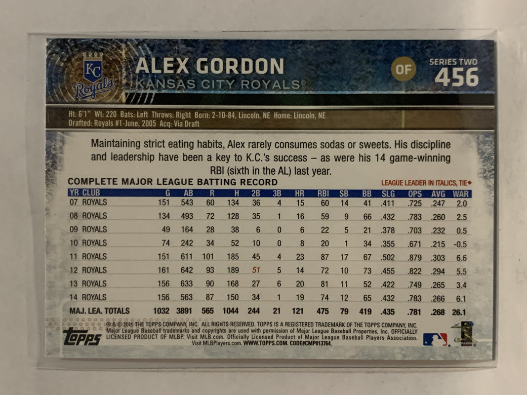#456 Alex Gordon Kansas City Royals 2015 Topps Series two Baseball Card