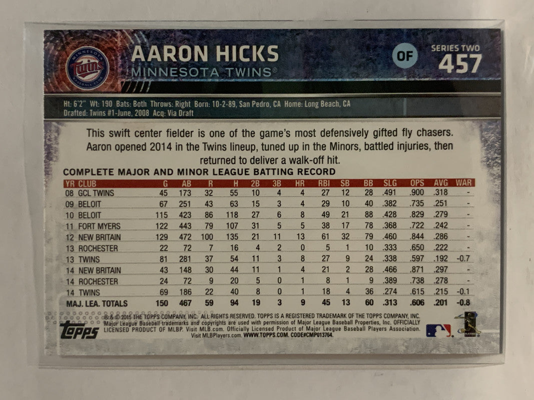 #457 Aaron Hicks Minnesota Twins 2015 Topps Series two Baseball Card