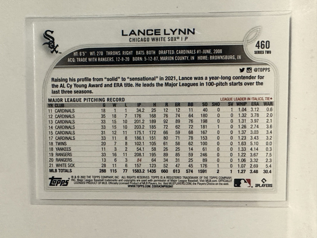 #460 Lance Lynn Chicago White Sox 2022 Topps Series Two Baseball Card