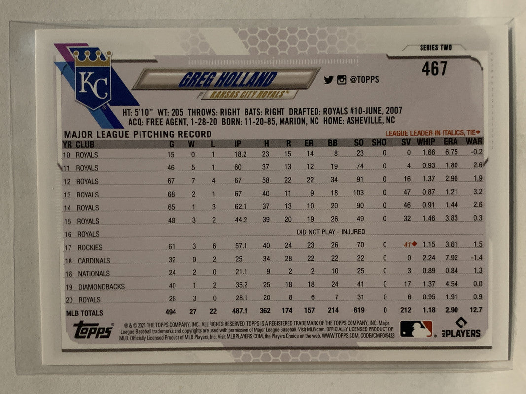 #467 Greg Holland Kansas City Royals 2021 Topps Series 2 Baseball Card