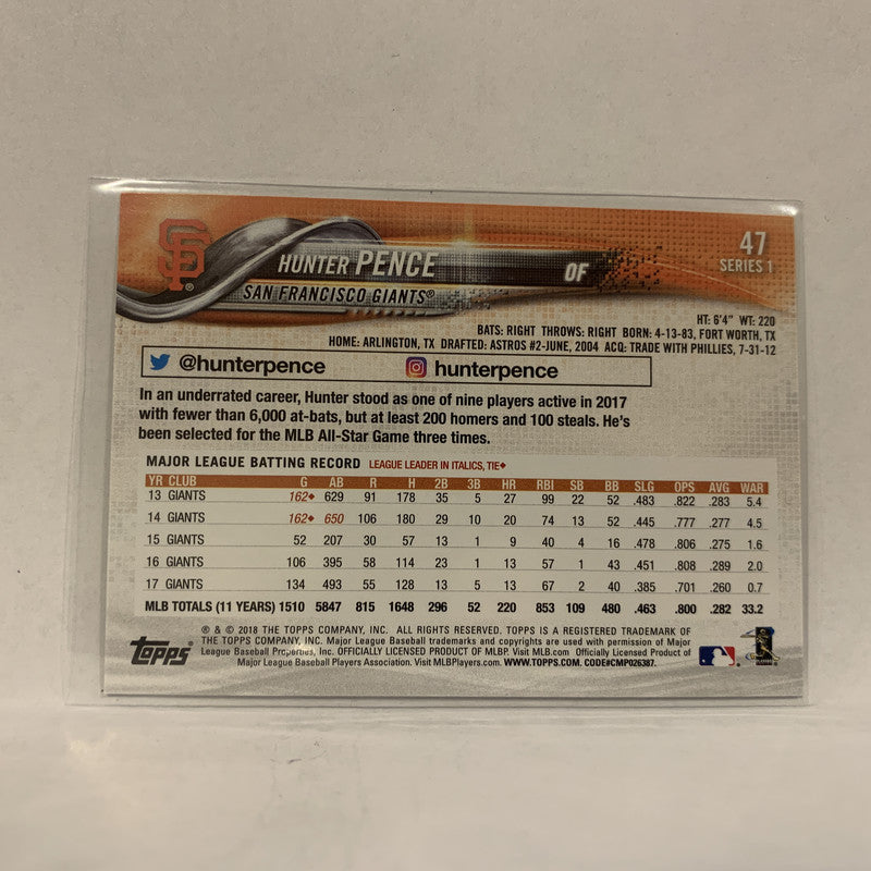 #47 Hunter Pence San Francisco Giants Series 1 2018 Topps Baseball Card A1P