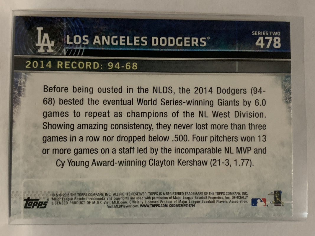 #478 Team Card Los Angeles Dodgers 2015 Topps Series two Baseball Card