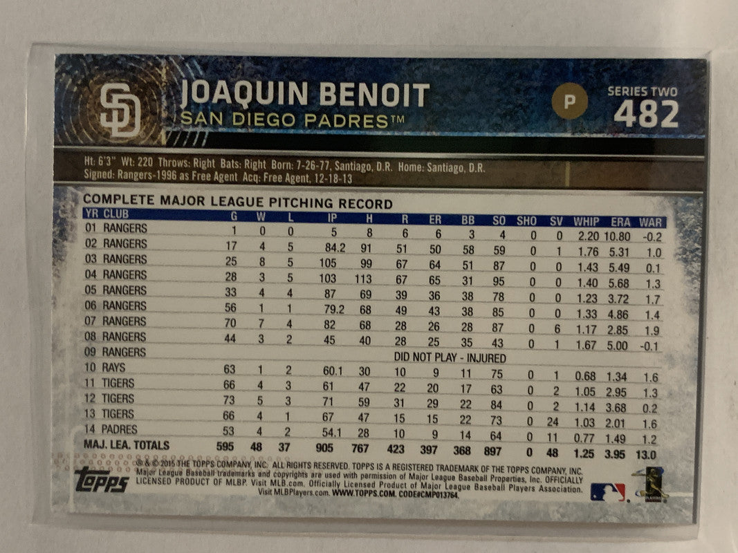 #482 Joquin Benoit San Diego Padres 2015 Topps Series two Baseball Card