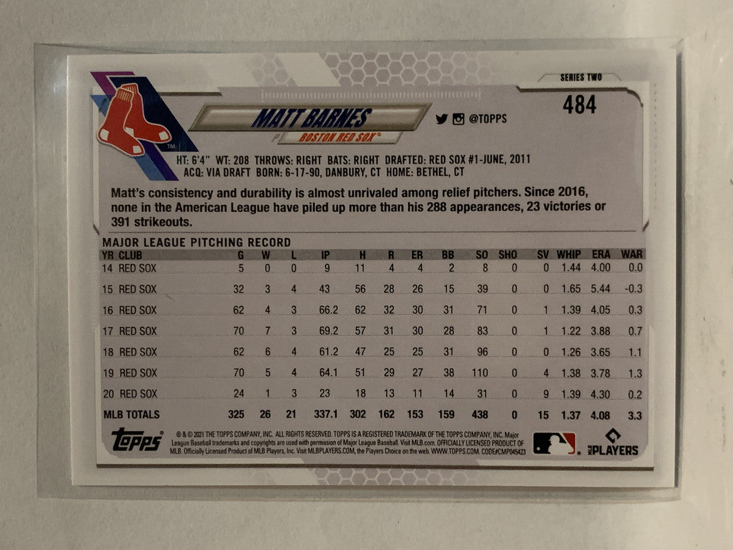 #484 Matt Barnes Boston Red Sox 2021 Topps Series 2 Baseball Card