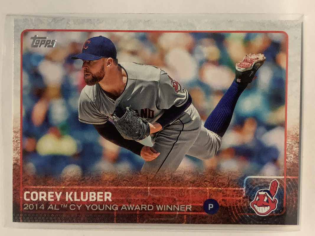 #487 Corey Kluber 2014 Al Cy Young Award 2015 Topps Series two Baseball Card