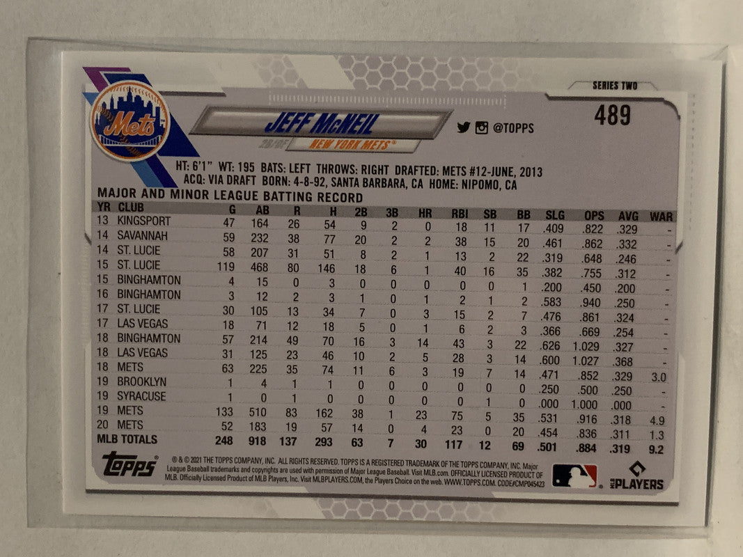 #489 Jeff McNeil New York Mets 2021 Topps Series 2 Baseball Card