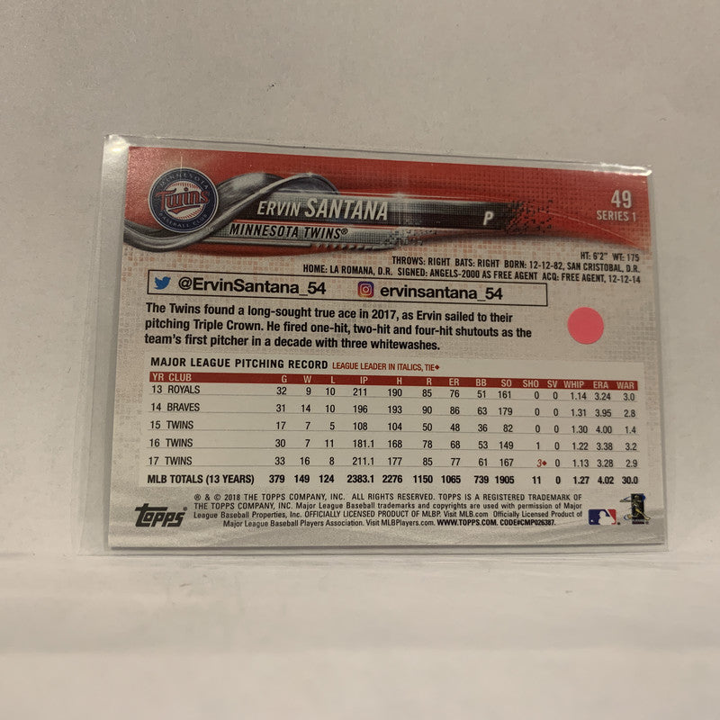 #49 Ervin Santana Minnesota Twins Series 1 2018 Topps Baseball Card A1M