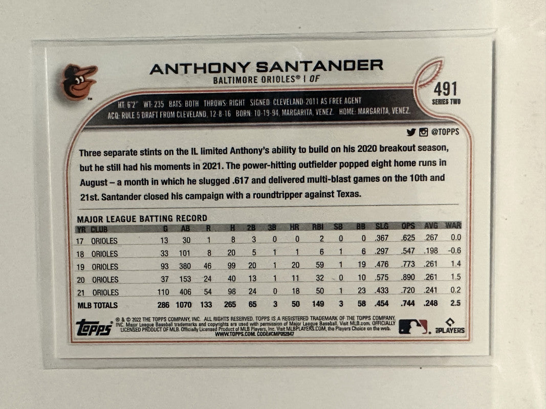 #491 Anthony Santander Baltimore Orioles 2022 Topps Series Two Baseball Card