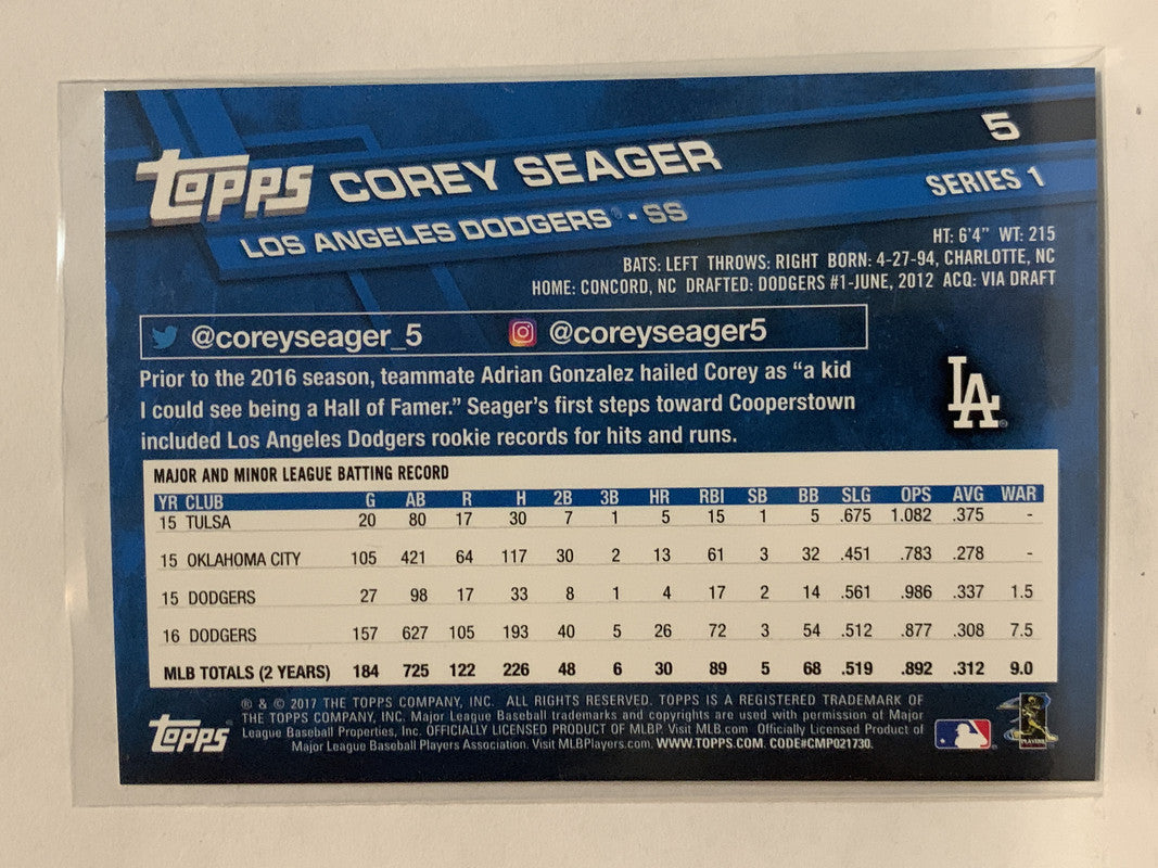 #5 Corey Seager All Star Rookie Los Angeles Dodgers 2017 Topps Series One Baseball Card