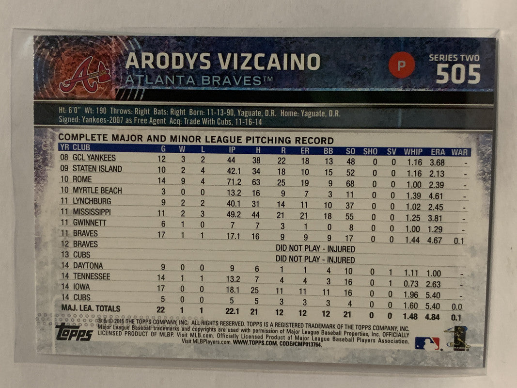 #505 Arodys Vizcaino Atlanta Braves 2015 Topps Series two Baseball Card