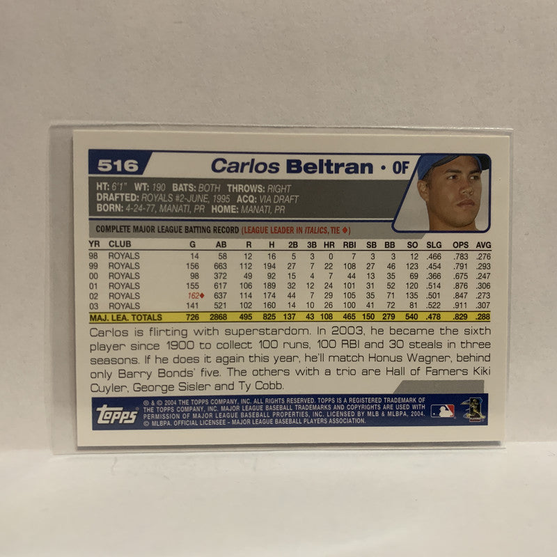 #516 Carlos Beltran Kansas City Royals 2004 Topps Baseball Card IO