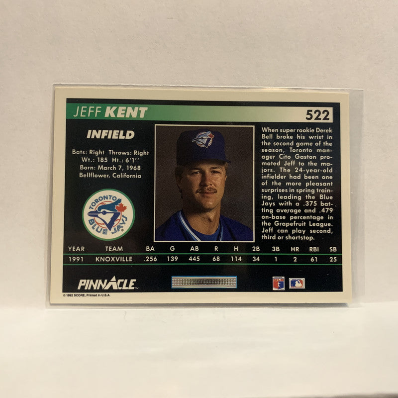 #522 Jeff Kent Rookie Prospect Toronto Blue Jays 1992 Pinnacle Baseball Card IJ