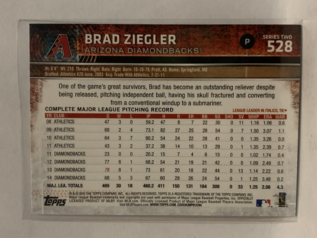 #528 Brad Ziegler Arizona Diamondbacks 2015 Topps Series two Baseball Card