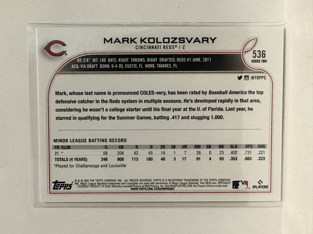 #536 Mark Kolozsvary Rookie Cincinnati Reds 2022 Topps Series Two Baseball Card