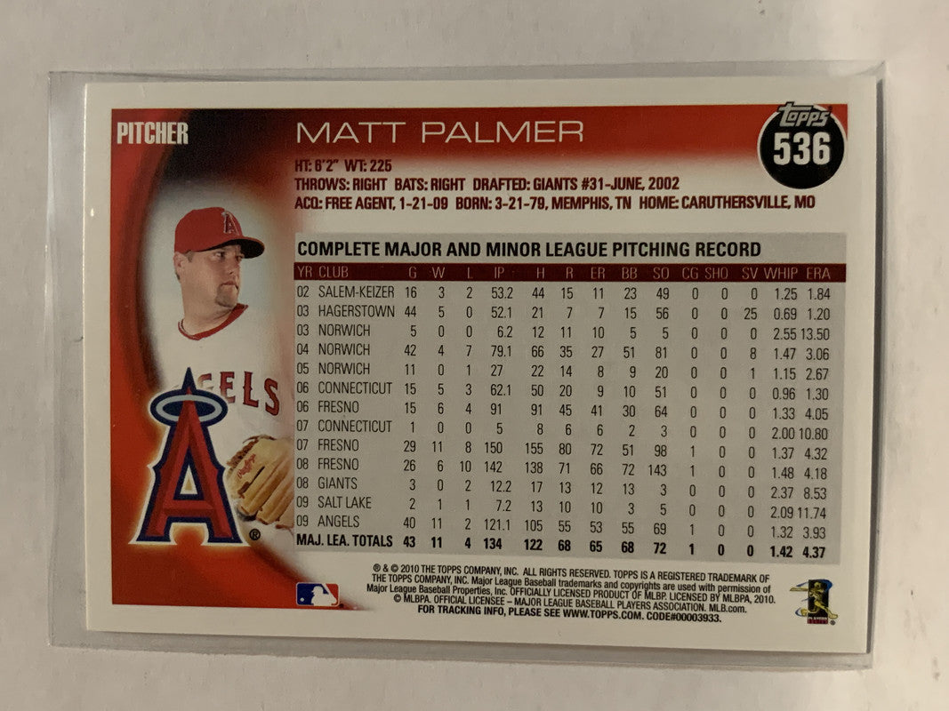 #536 Matt Palmer Los Angeles Angels 2010 Topps Baseball Card