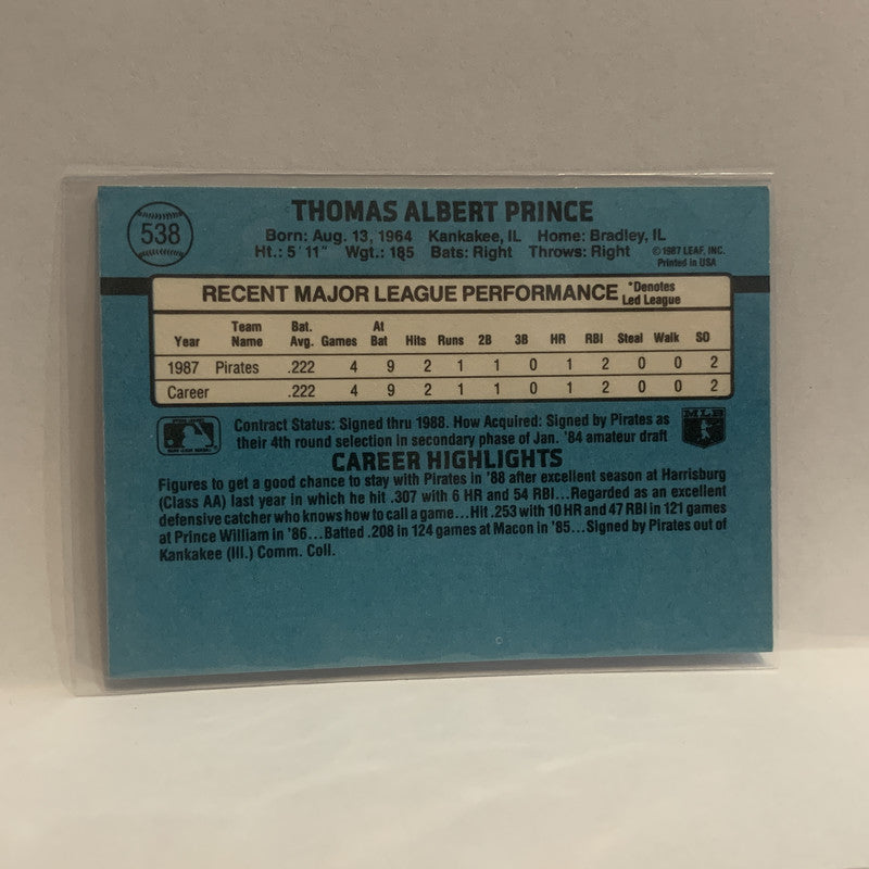 #538 Thomas Albert Prince Pittsburgh Pirates 1988 Donruss Baseball Card HV
