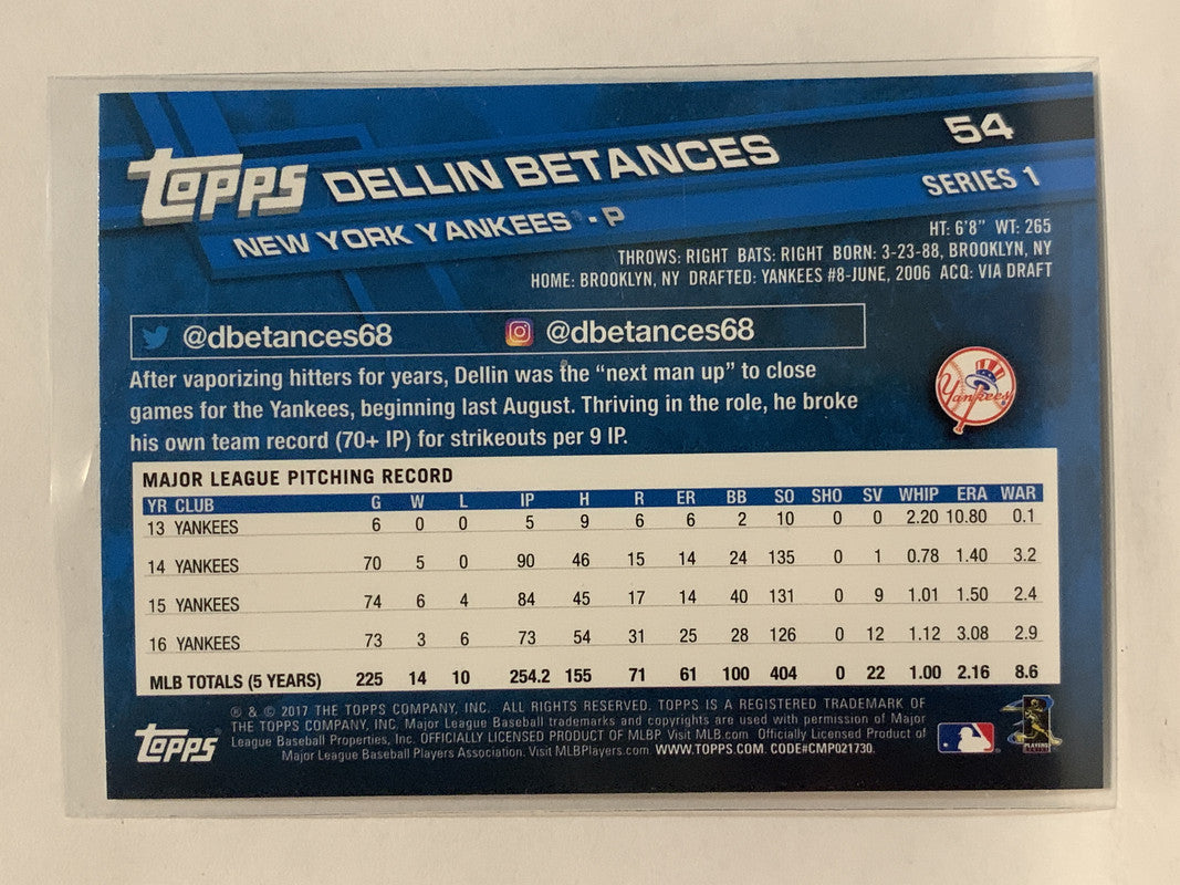 #54 Dellin Betances New York Yankees 2017 Topps Series One Baseball Card
