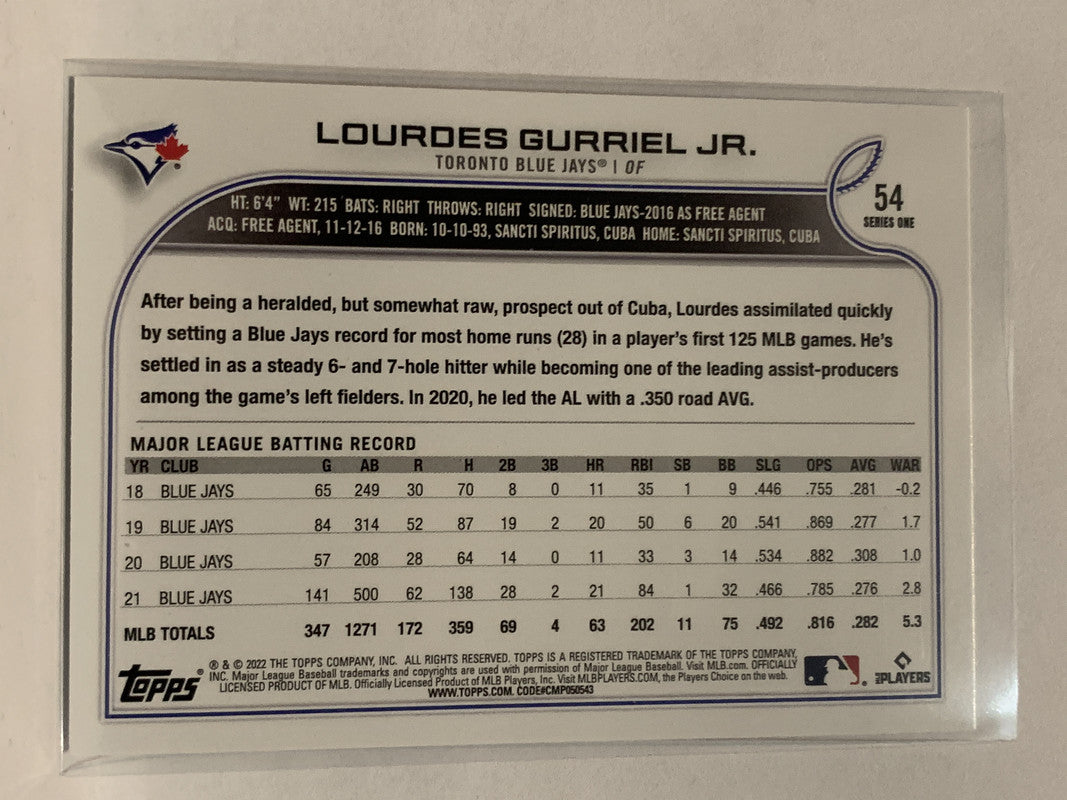 #54 Lourdes Gurriel Jr Toronto Blue Jays 2022 Topps Series 1 Baseball Card MLB