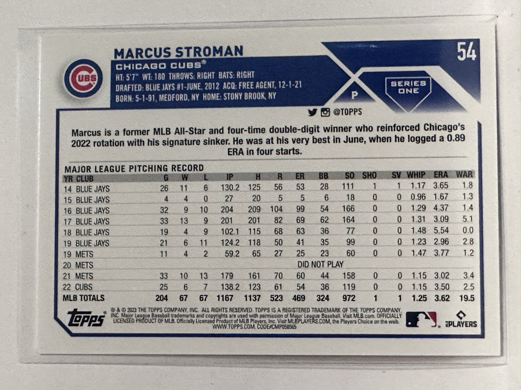 #54 Marcus Stroman Chicago Cubs 2023 Topps Series One Baseball Card