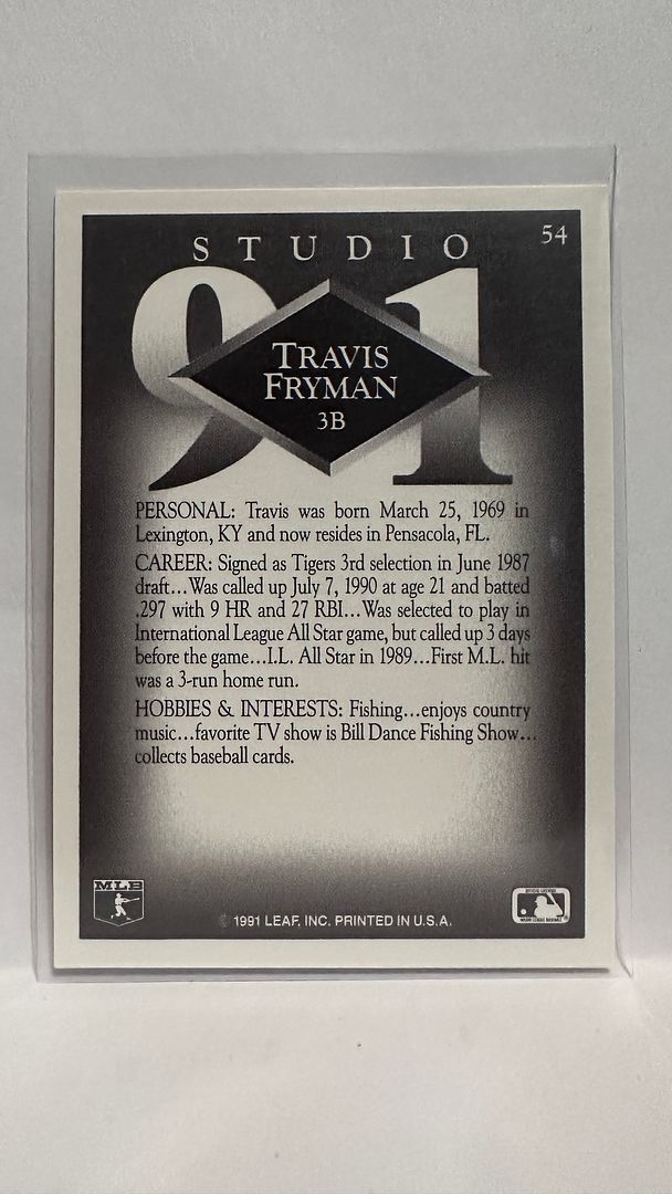 #54 Travis Fryman Detroit Tigers 1991 Studio Baseball Card