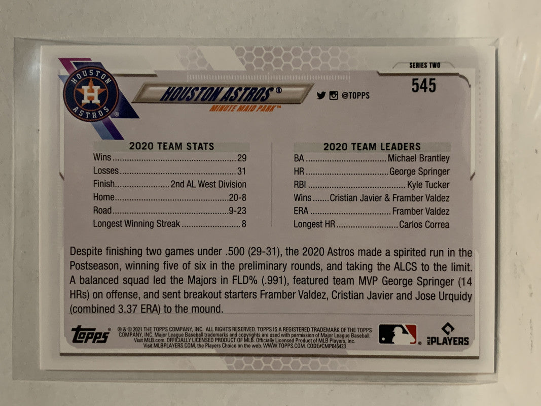 #545 Team Card Houston Astros 2021 Topps Series 2 Baseball Card