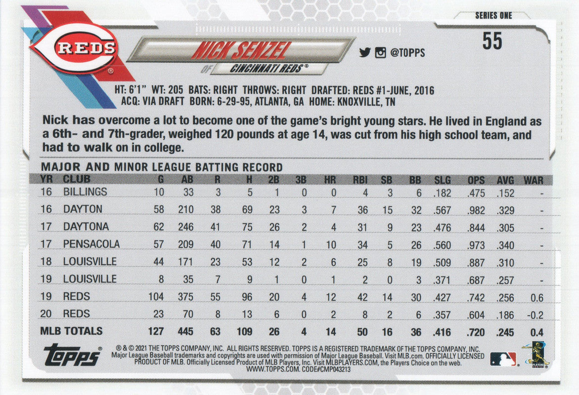 #55 Nick Senzel Cinncinati Reds 2021 Topps Series 1 Baseball Card