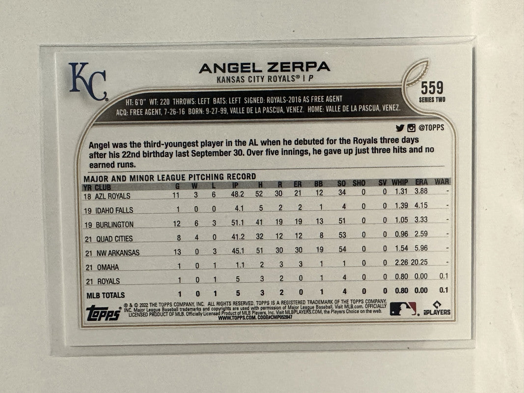 #559 Angel Zerpa Rookie Kansas City Royals 2022 Topps Series Two Baseball Card